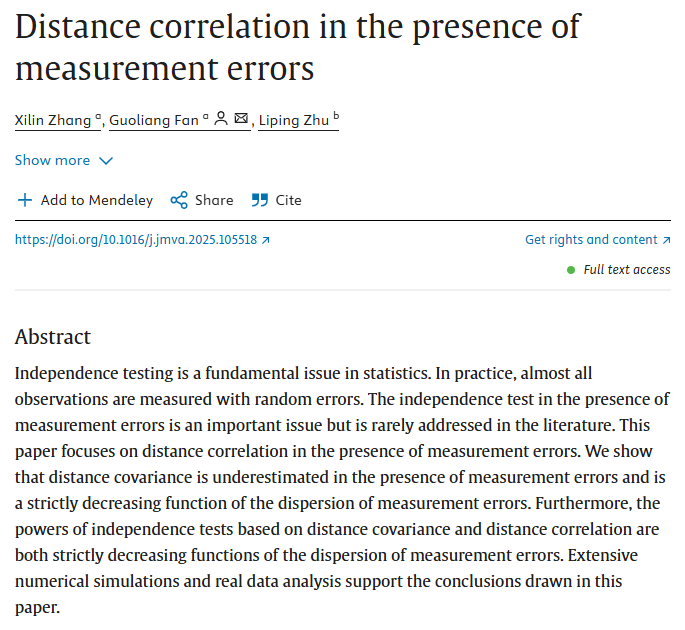 物流经济与统计系博士研究生张熙林在ABS三星期刊《Journal of Multivariate Analysis》发表学术论文