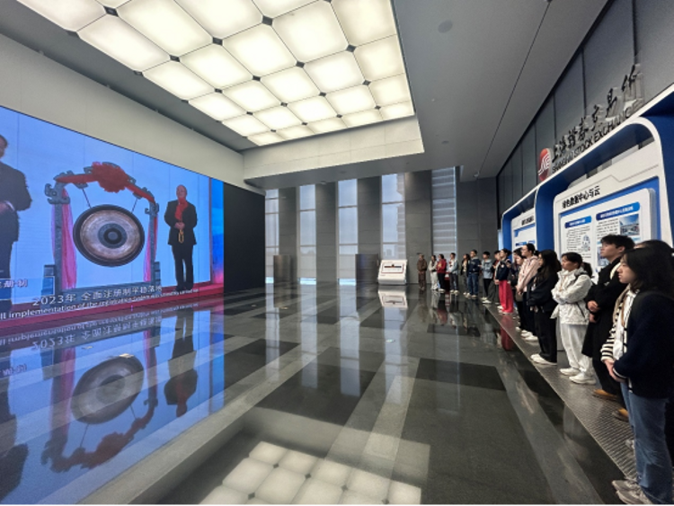 随后,师生一行步入科技感满满的上交所成立30周年主题馆,通过聆听专业讲解,回溯社会主义市场经济体制改革的历史进程,切身感受祖国经济与科技事业在开拓创新中不断突破的奋进历程。